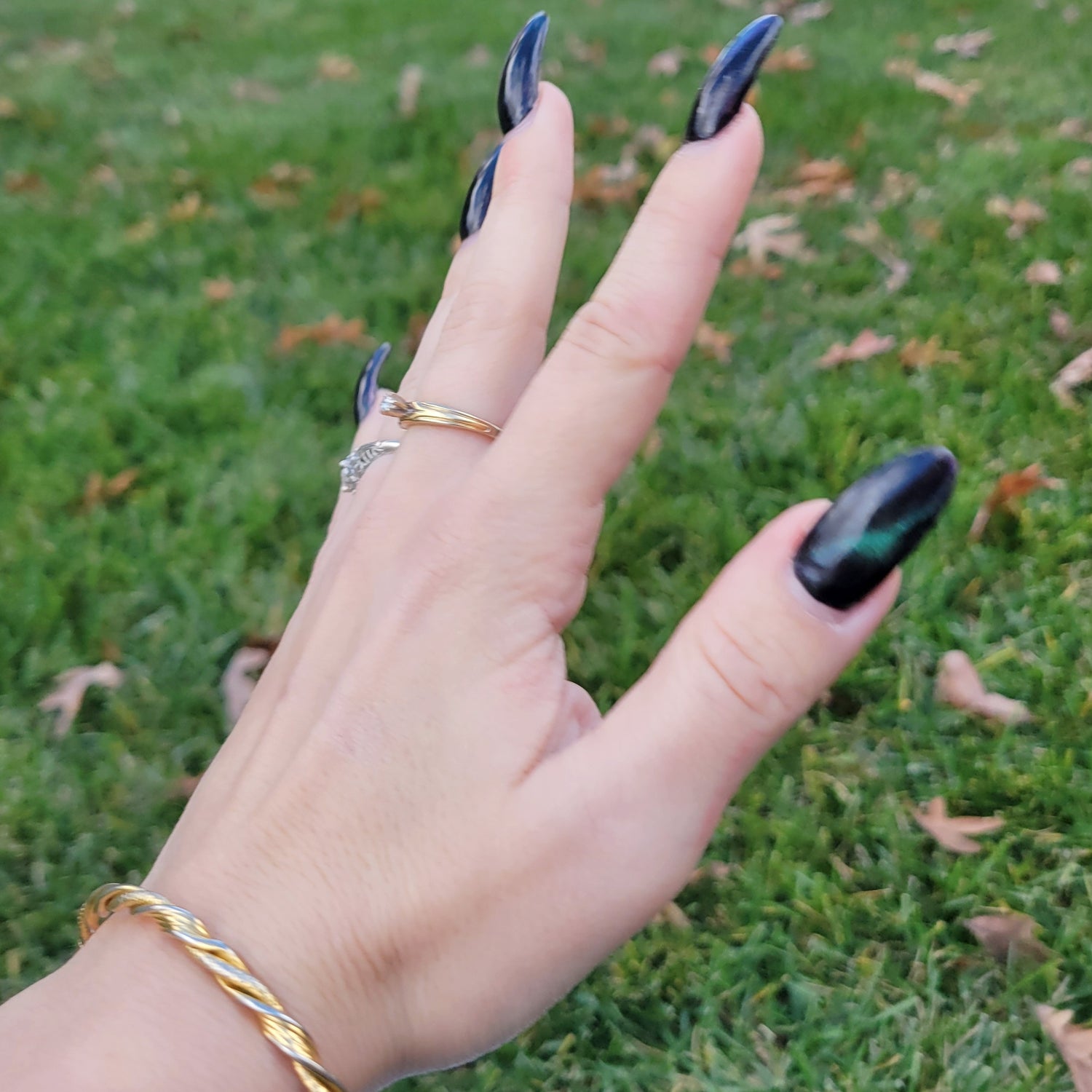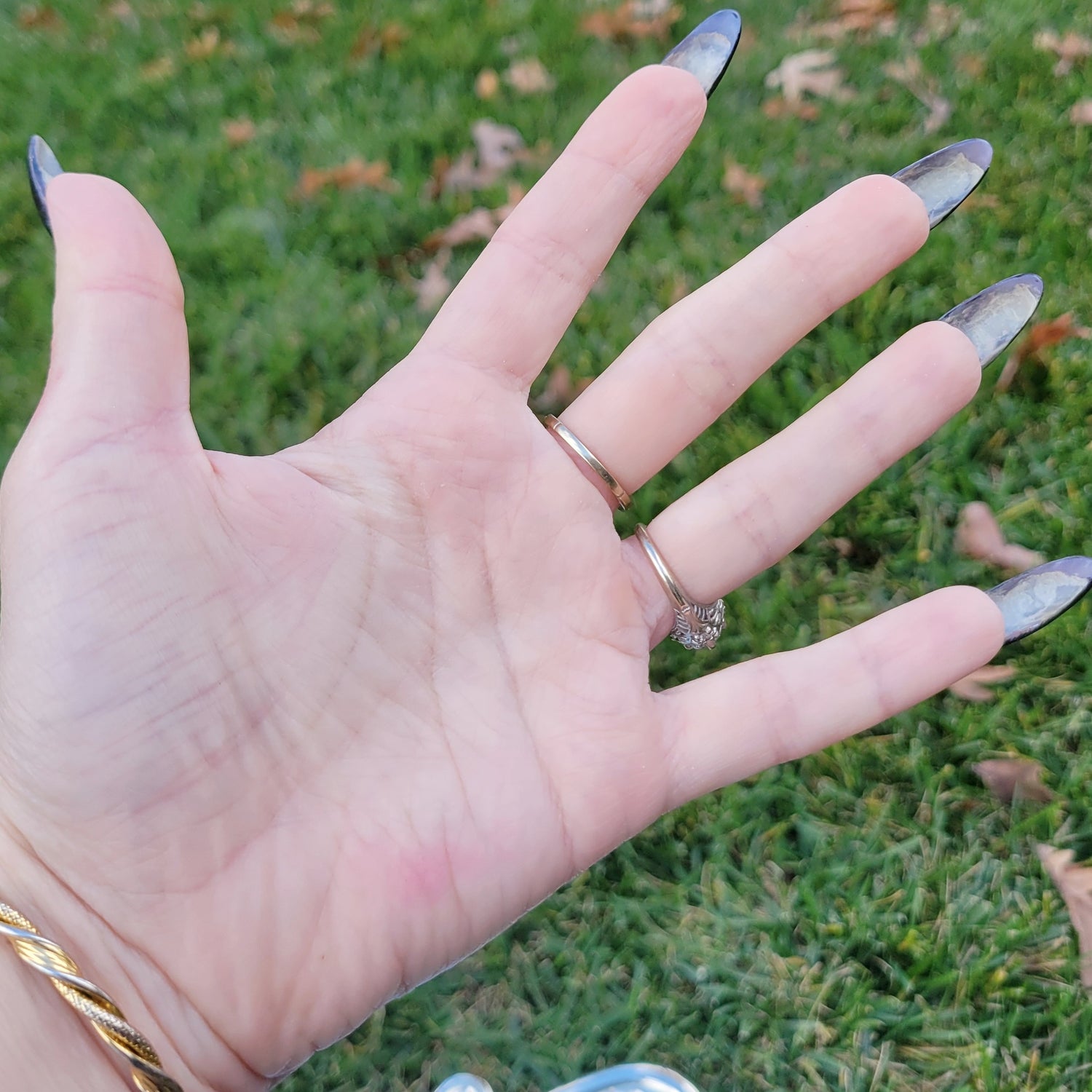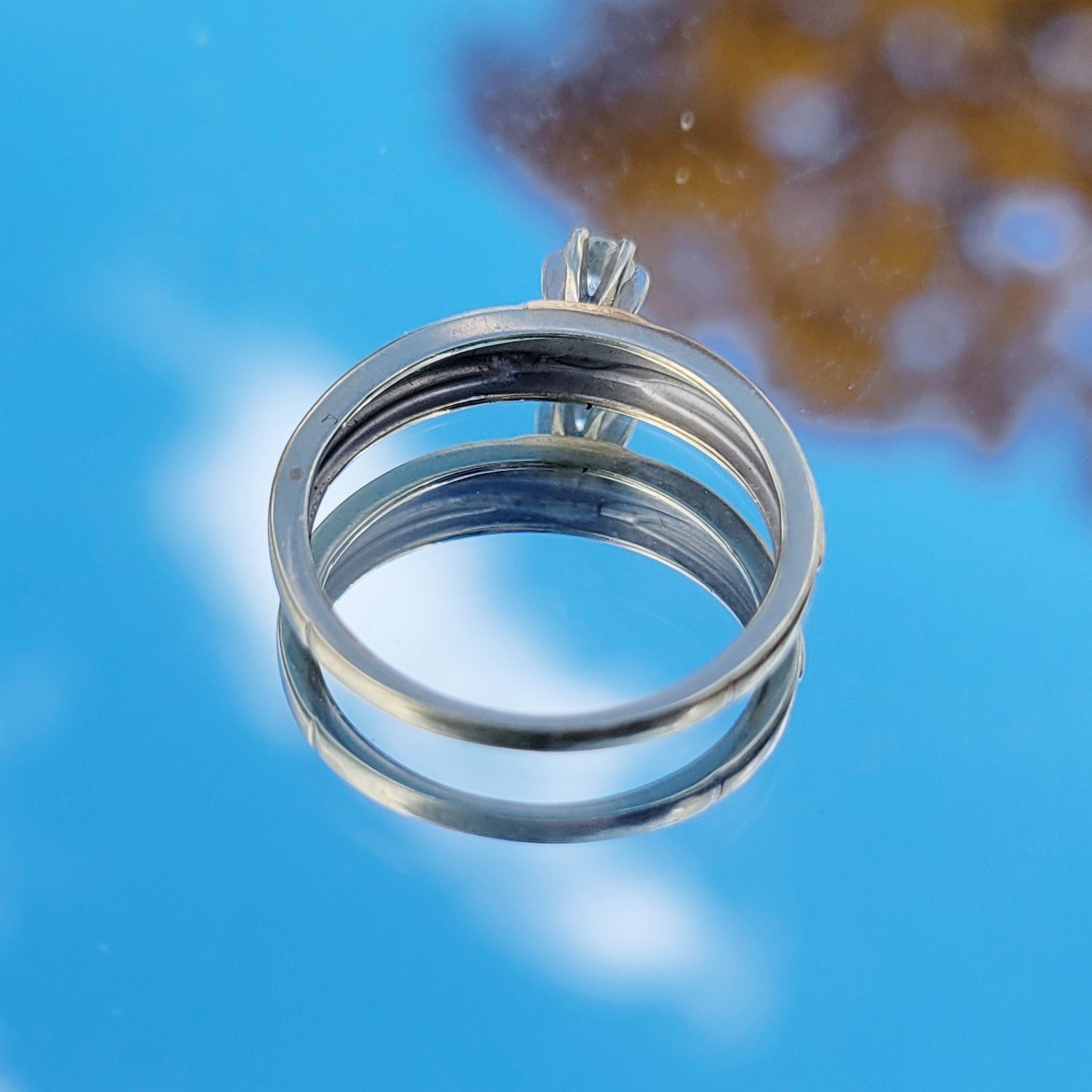 Vintage 40s engagement ring! Signed NBK 14k yellow gold wedding ring with engraved details, small diamond in white gold setting, and rhodium plate on the interior of the band. Measures approx. 5 1/4