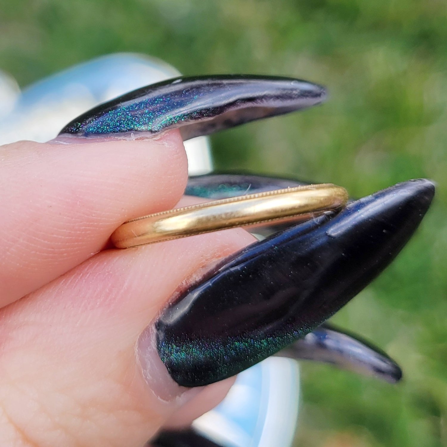 Vintage 40s Wedding Band! Signed 14k yellow gold simple wedding ring signed by Lohengrin. Has a very small beaded edge. Measures approx. a 5 1/4