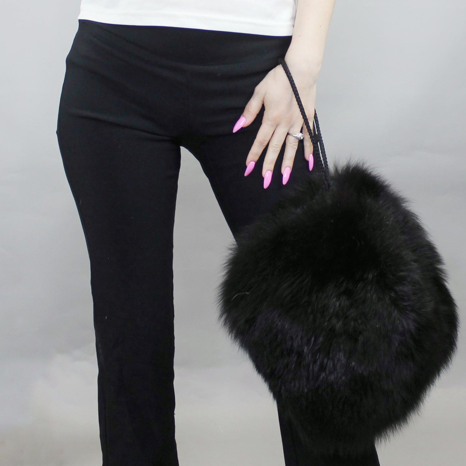 Vintage 60s Fur Muff/Purse! Black long luxurious fur muff with wristlet cord strap and zip open purse compartment with pocket! Classic Glamour.
